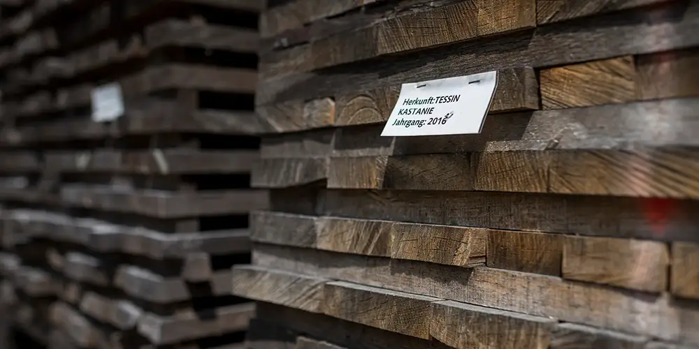 Pour nos barriques, nous utilisons le meilleur bois de chêne, provenant de Suisse, de France et d'Amérique. Depuis quelques années, nous fabriquons également des barriques en mélèze, en châtaignier et en acacia, une spécialité.