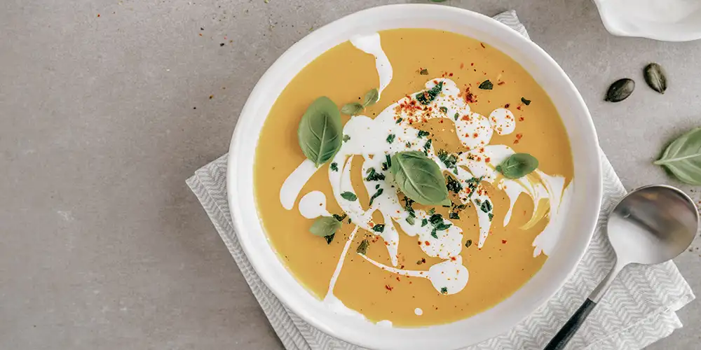 - Réduire la soupe en purée à l'aide d'un mixeur-plongeur.