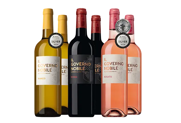 Entdecken Sie das Il Governo Nobile Familienpaket, eine exquisite Zusammenstellung drei einzigartiger Weine, die die Essenz Italiens in sich vereint. Dieses Paket bietet eine einzigartige Gelegenheit, die Vielfalt und Qualität von Il Governo Nobile zu erleben. Geniessen Sie mit jedem Schluck die Leidenschaft und das Handwerk, die in jedem Tropfen dieser erlesenen Kollektion stecken.