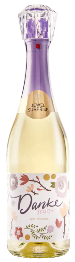 Sie möchten einem lieben Menschen Danke sagen? Mit der Dankeschön-Flasche liegen Sie goldrichtig. Echtschmuck im Sektkorken? Das ist weltweit einmalig - wie der liebe Mensch, den Sie beschenken möchten. Ausserdem erhalten Sie zu jeder Flasche ein weiteres Schmuckstück, eine wunderschöne Halskette - zum Weiterschenken oder für Sie selbst.