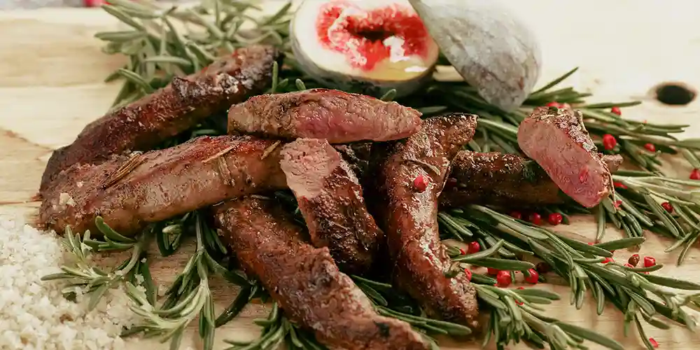 | 650 g Rehfilets, küchenfertig pariert | 3 – 4 Stängel Thymian |