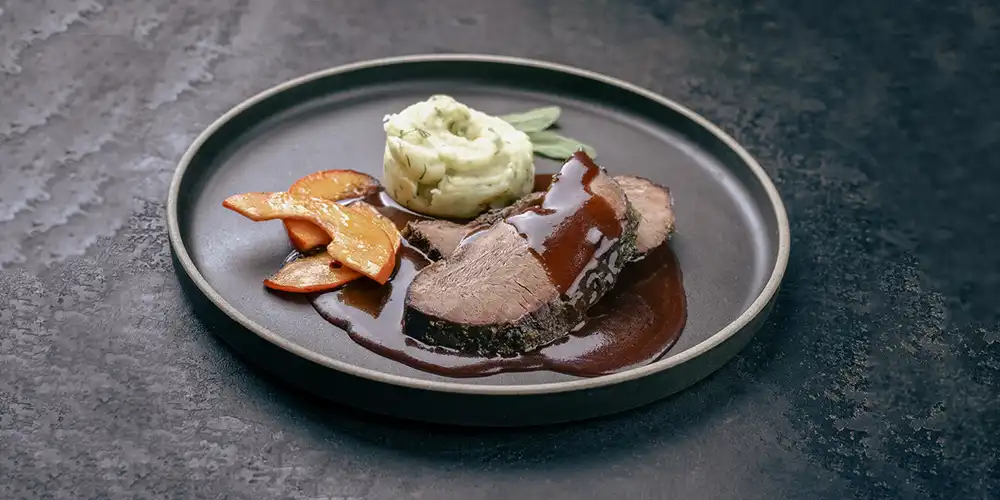 Geschmorter Rindschulterbraten mit Kartoffelstock und Saisongemüse