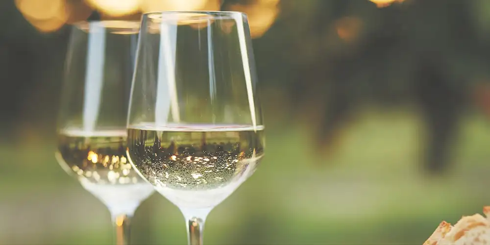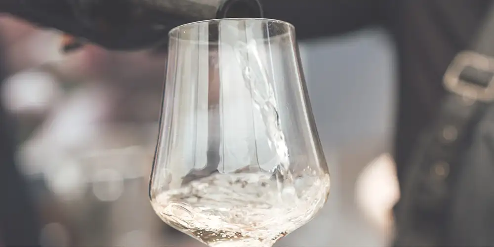...darf das Glas grösser und etwas offener sein, da es weniger darum geht, die Aromen festzuhalten. Die weitere Öffnung lenkt den Wein an den Zungenrand, wo die Säure erlebt wird und der Wein seine Struktur besser präsentieren kann.